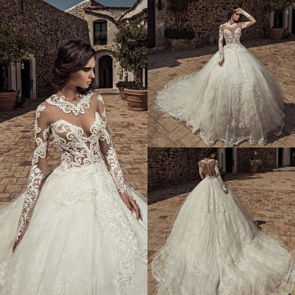 Ball Gown Wedding Dresses 2020 Sheer Crew Neckline Lace Appliques