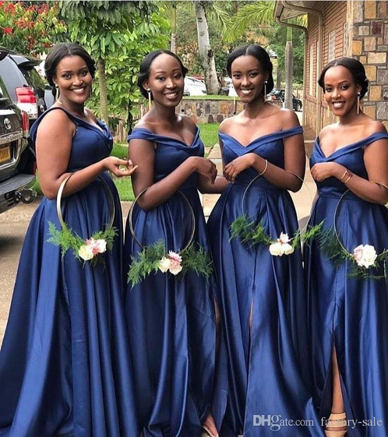 African Off Shoulder Bridesmaid Dresses Royal Blue Side Split