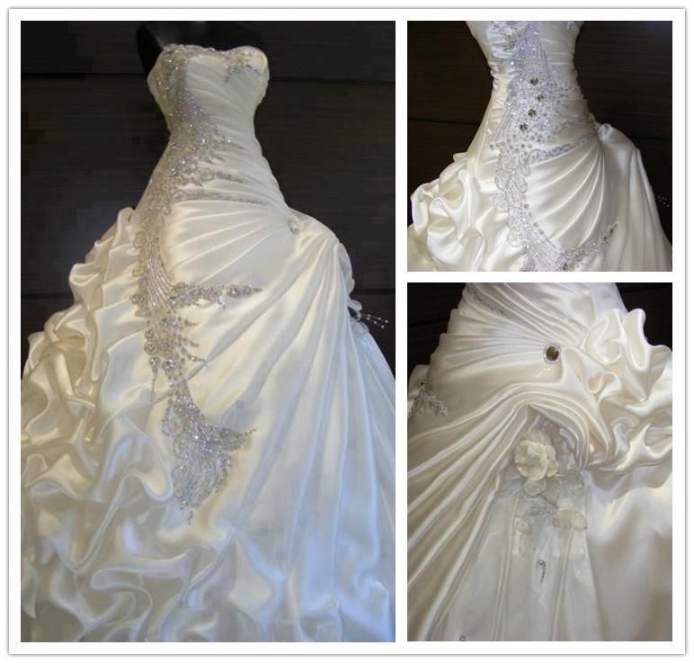 Luxurious Ball Gown Sweetheart Neck Crystals Beaded Ruffled Skirt Silk Satin Wedding Dresses Pure Custom Made For Wedding Occasion One Shoulder Ball Gown Wedding Dress Pink Ball Gown Wedding Dresses From Fbdh05