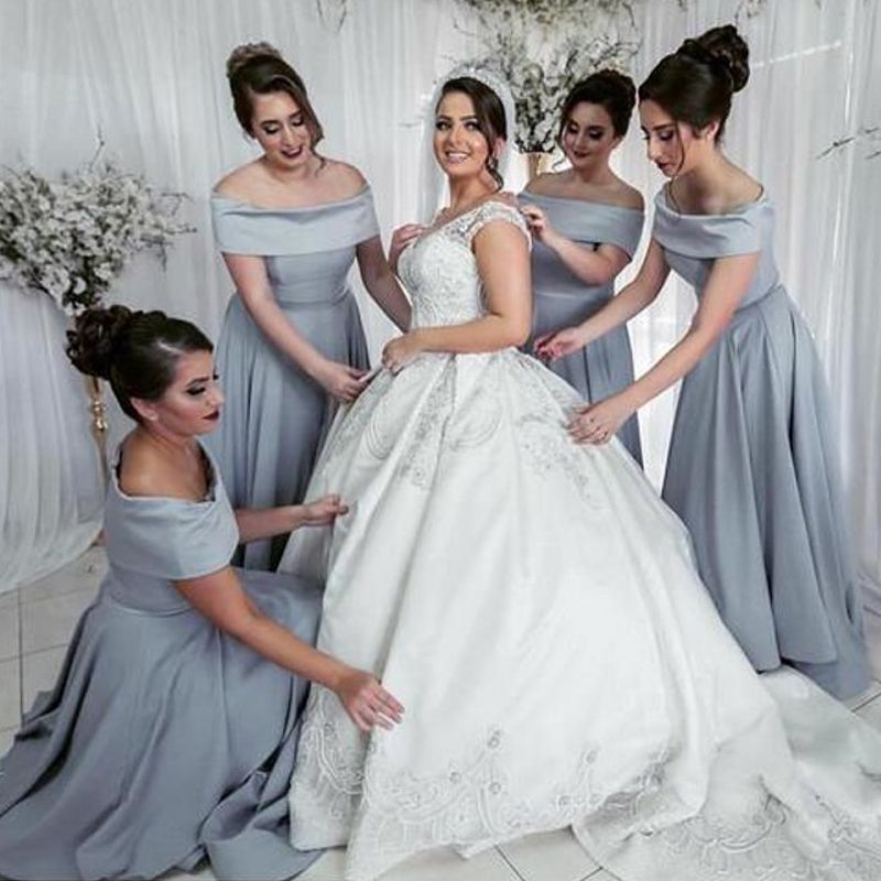 Silver Gray New Plus Size Bridesmaid Dresses Beaded Sequins Off