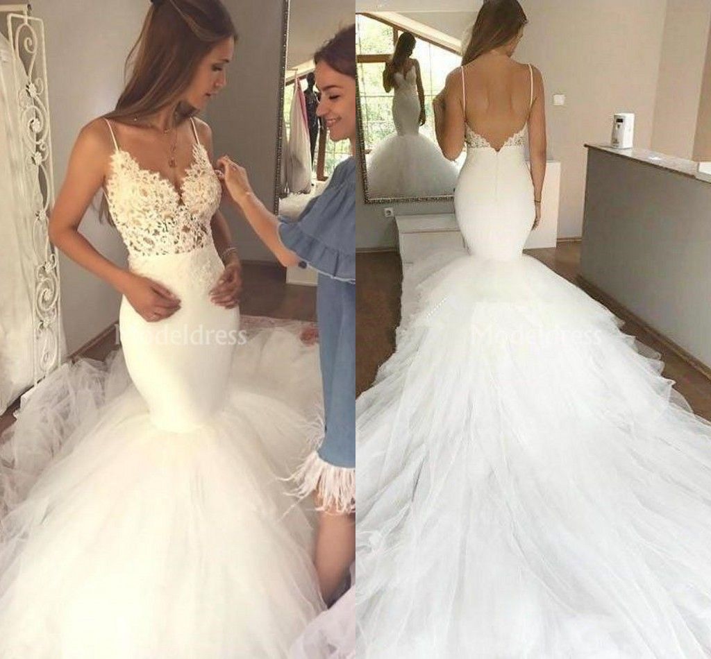 New Arrival Lace Mermaid Spaghetti Straps Wedding Dress Sexy