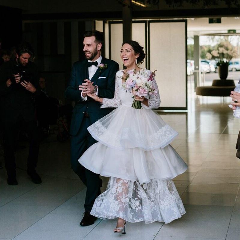 Discount Long Sleeve Tiered Lace Wedding Dresses New Scoop Neck