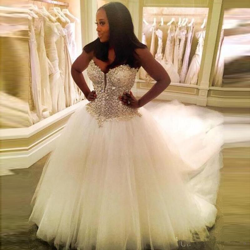 2019 Luxury New White Beaded Tulle Wedding Ball Gowns Long Bridal