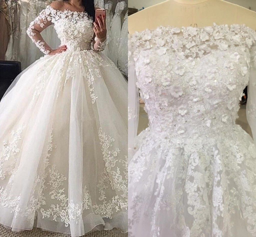 2020 Puffy Off Shoulder Ball Gown Wedding Dresses Illusion Full