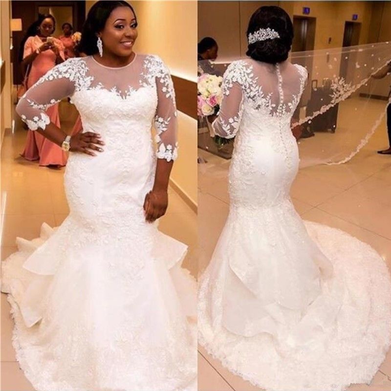 Discount African Plus Size Mermaid Wedding Dress Lace Appliques