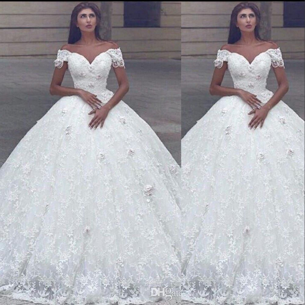 Sexy New Arabic Ball Gown Wedding Dresses Off Shoulder Lace 3d