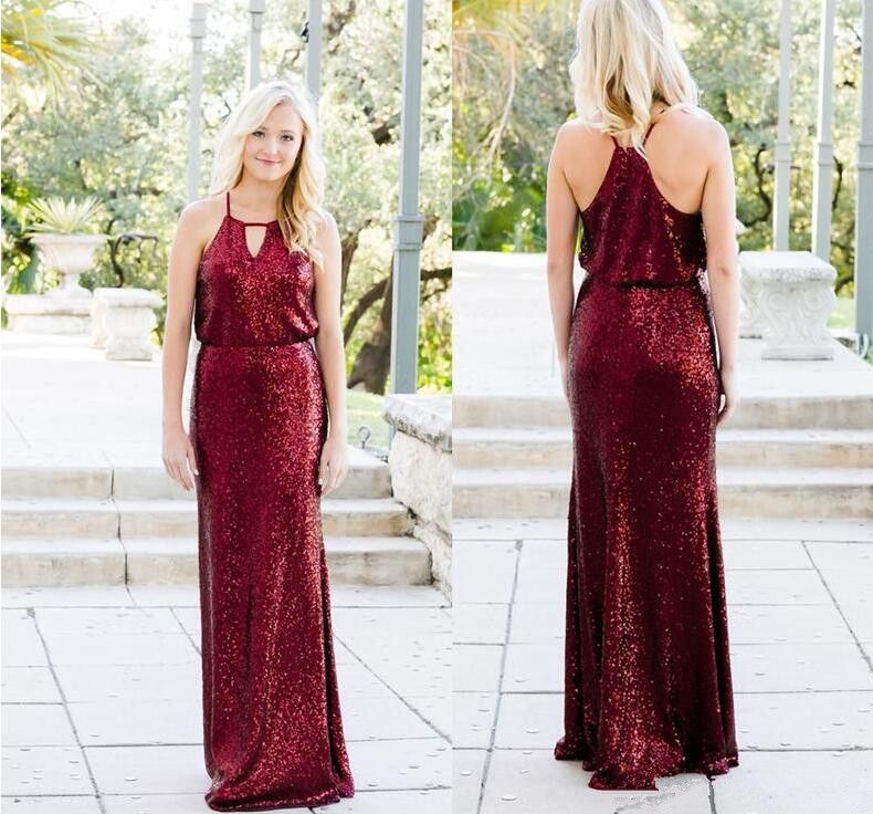 2019 Sparkle Burgundy Sequins Sheath Bridesmaids Dresses Western Country Garden Boho Wedding Guest Party Gowns Evening Prom Dress Cheap Aubergine Bridesmaid Dresses Black And Red Bridesmaid Dresses From Gaogao8899 59 57 Dhgate Com