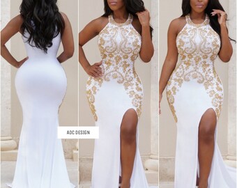 White Gold African Kaftan Dress 1 Dashiki African Wedding