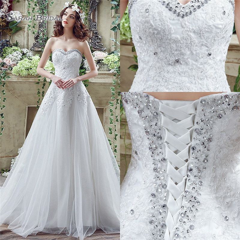 2020 White A Line Tulle Sweetehart Lace Up With Appliques Sequins