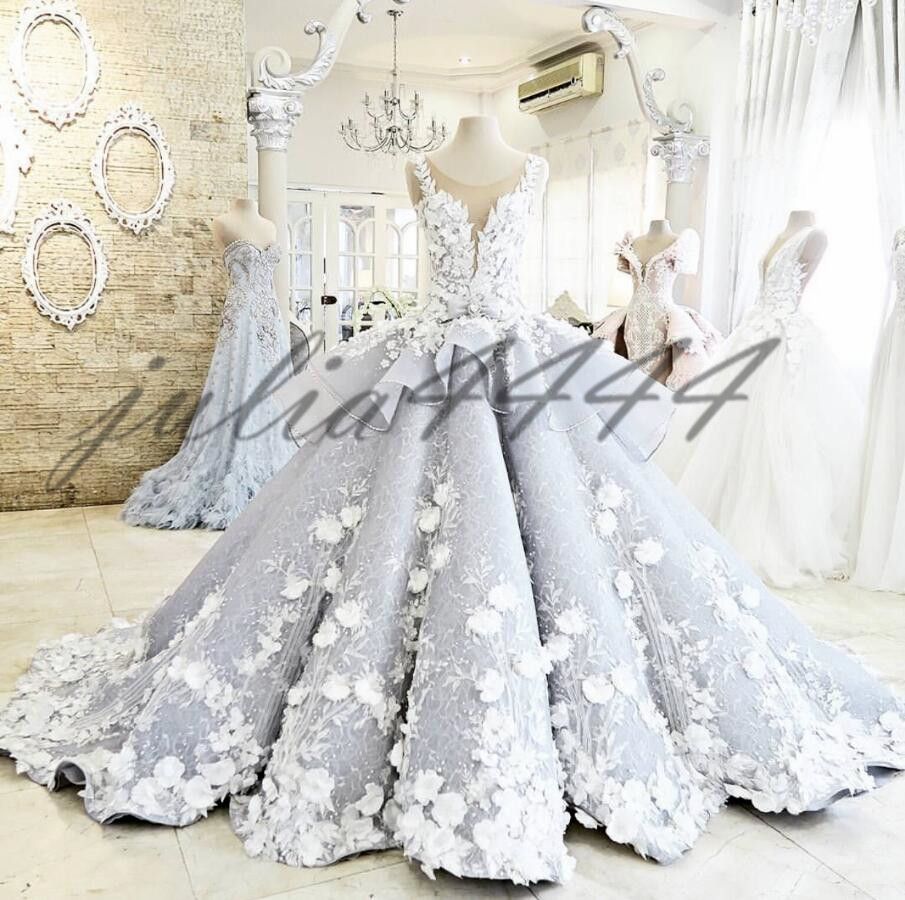 Discount Silver Grey White Wedding Dresses 2019 Modest Off