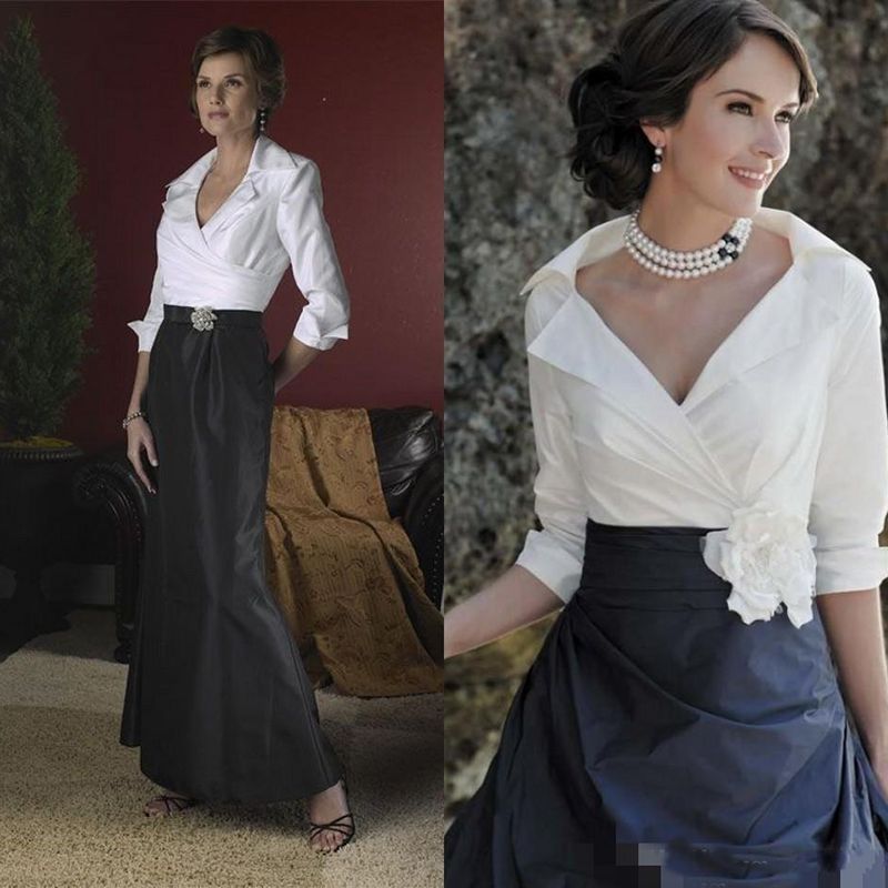 New Black And White Mother Of The Bride Dresses Long Sleeves Floor