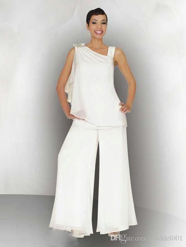 2019 Elegant White Mother Of The Bride Groom Pant Suit Ruched Plus
