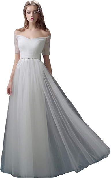 White Slim Fit Wedding Dress Party Gwon Off Shoulder Half Sleeve